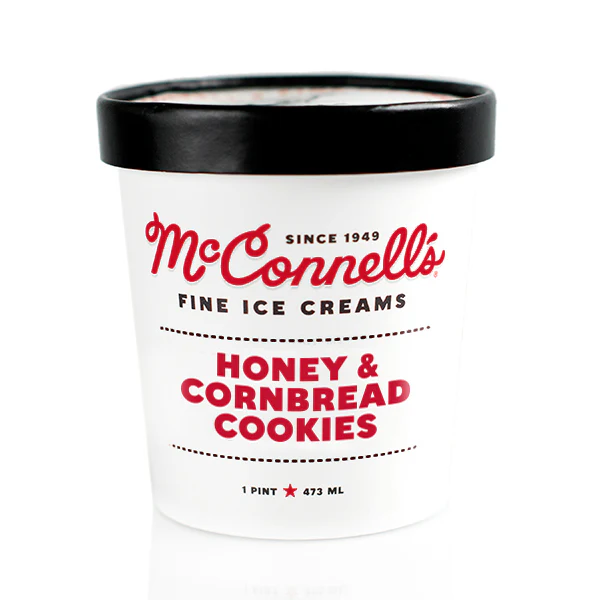 INGREDIENTS: Cream, Milk, Cane Sugar, Non-Fat Milk Solids, Egg Yolks, Milk Protein Concentrate, Tapioca Starch, Cornbread Cookies (Sugar, Flour, Butter, Corn, Eggs, Corn Meal, Salt, Baking Powder, Baking Soda), Honey