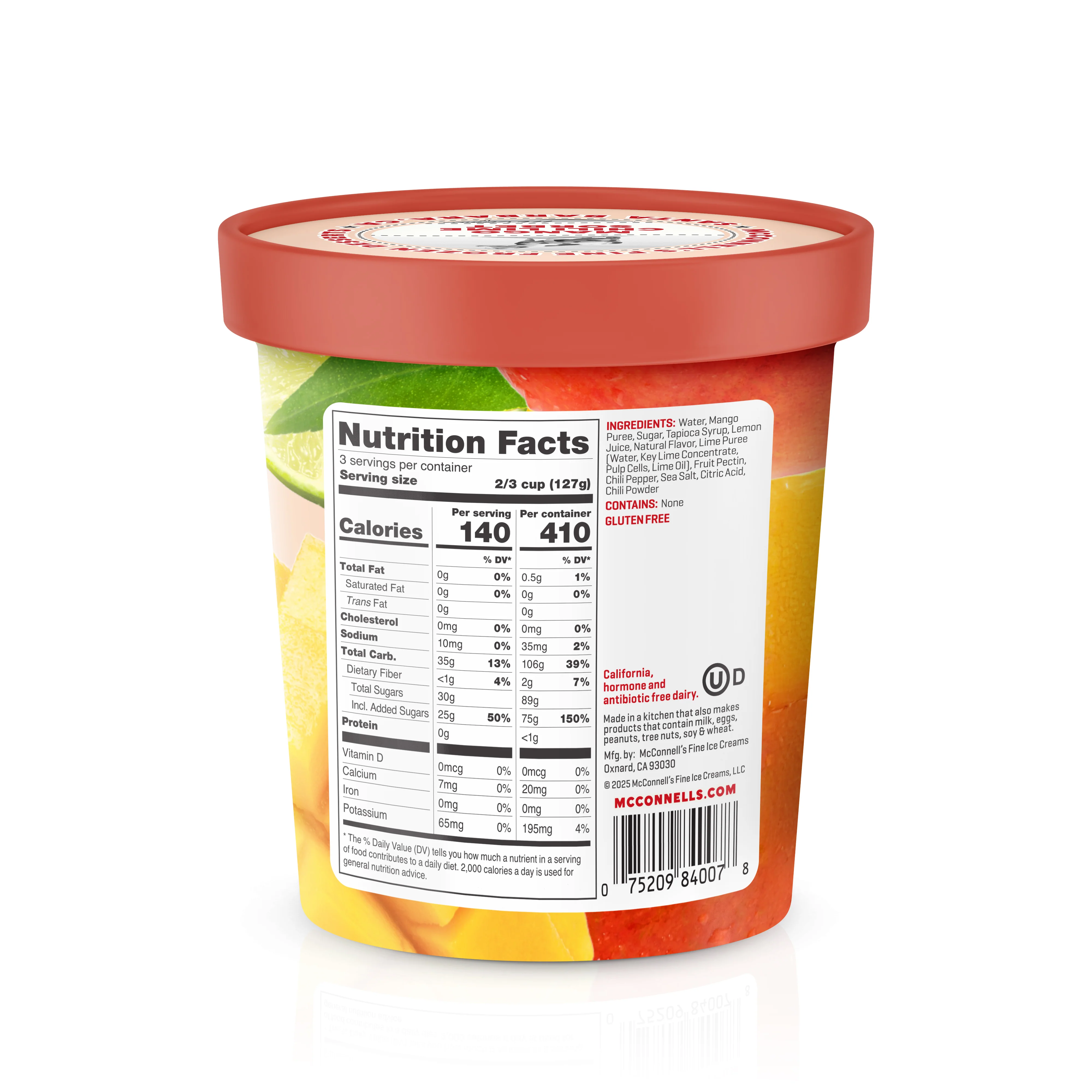 INGREDIENTS: Water, Mango Puree, Sugar, Tapioca Syrup, Lemon Juice, Natural Flavor, Lime Puree (Water, Key Lime Concentrate, Pulp Cells, Lime Oil), Fruit Pectin, Tajin® (Chili Peppers, Sea Salt, Citric Acid, Dehydrated Lime Juice, Silicon Dioxide (to prevent caking), Citric Acid, Chili Powder